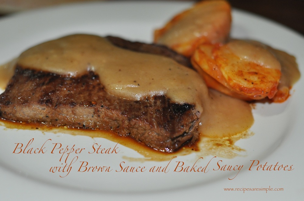 This Black Pepper Steak Recipe with Brown Sauce and Baked Saucy Potatoes is so easy to prepare and makes a nice comforting meal for the steak -lover in you!