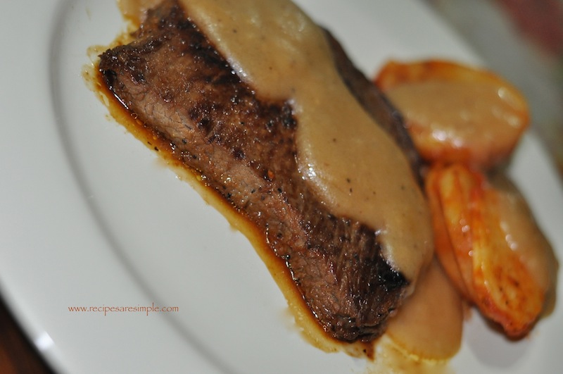 Black Pepper Steak Recipe with Brown Sauce and Baked Saucy Potatoes