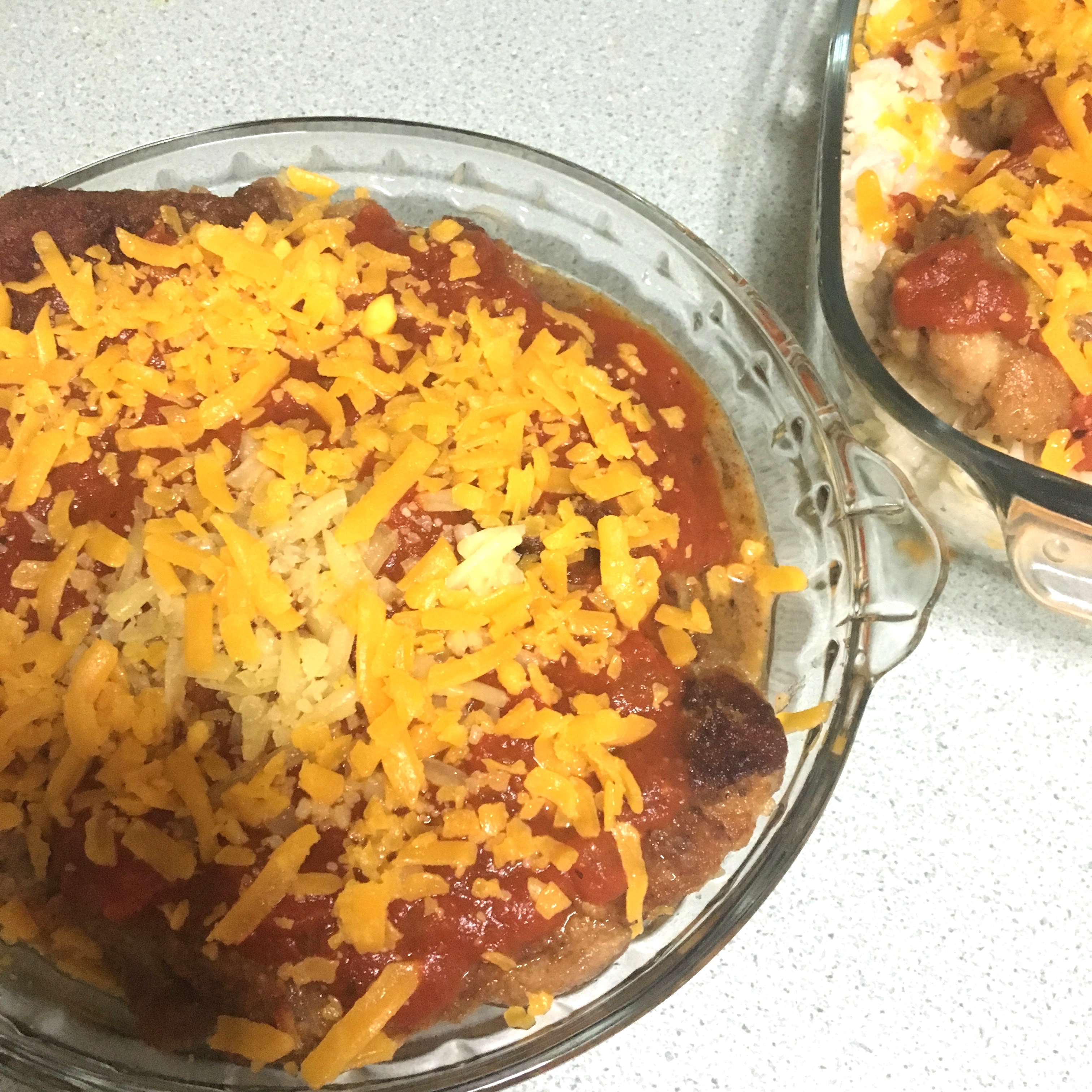 This Chicken Chops Baked Rice with Cheese is extremely easy to make. Kids love it because of the delicious melted cheese on top, and adults have a hard time resisting it as well. All the delicious, hot ooozy, goodness is revealed when you first cut into that baked melted crust. It’s hot – be careful, although I know it’s kinda hard to wait patiently 🙂 This is my take on the popular Hong Kong Dish which is basically Chicken Chops served over fried rice and baked with marinara sauce and cheese scattered over the top. I prefer a simple and fragrant rice as the base, fried rice seems a bit too heavy with the marinara sauce and cheese. Must be served immediately from the oven, while the cheese is still melted and oozy. Enjoy!