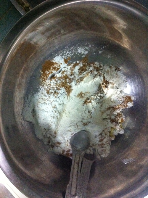 - Combine the (DRY INGREDIENTS) flour, cornflour, baking soda, coriander powder, cumin powder, salt in one bowl.
