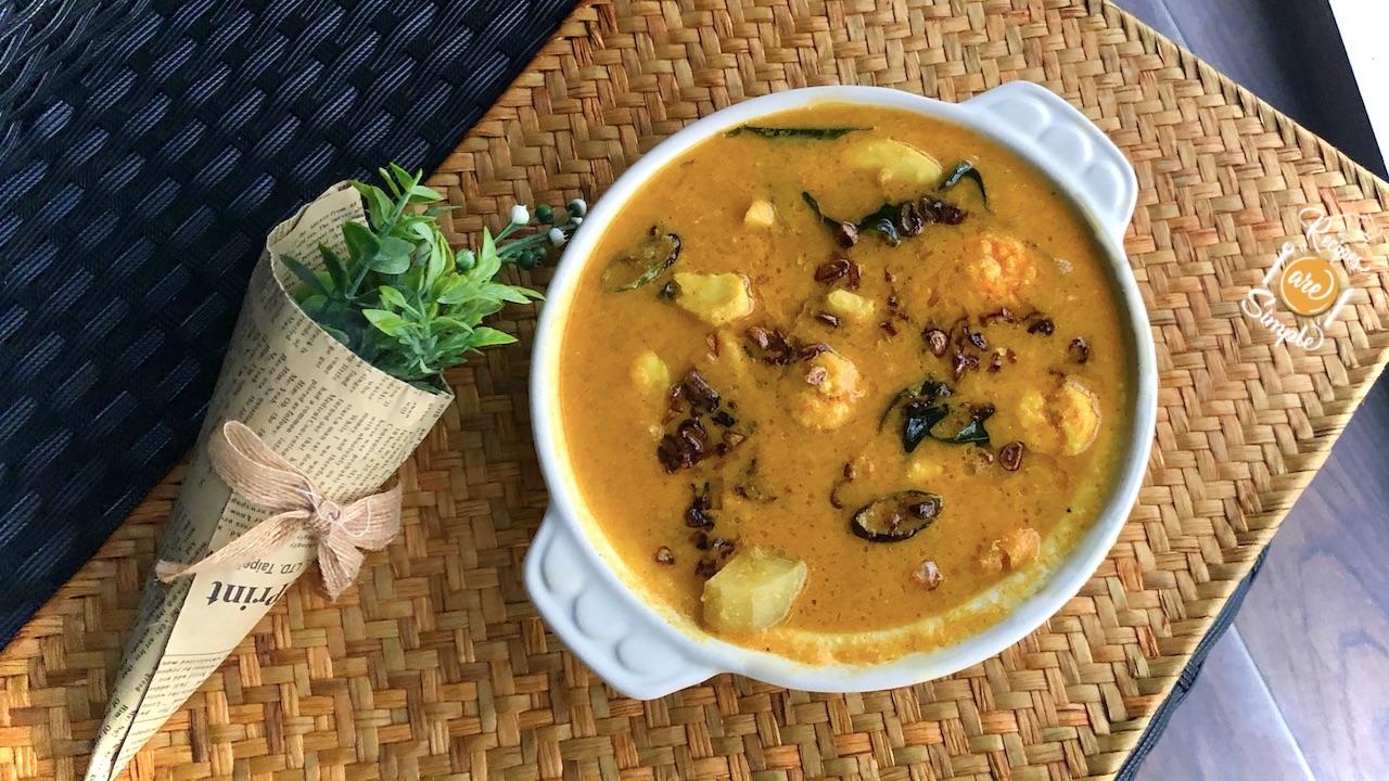 Chakkakuru Manga Chemmeen Curry(kerala coconut shrimp curry with jackfruit seeds and green mango