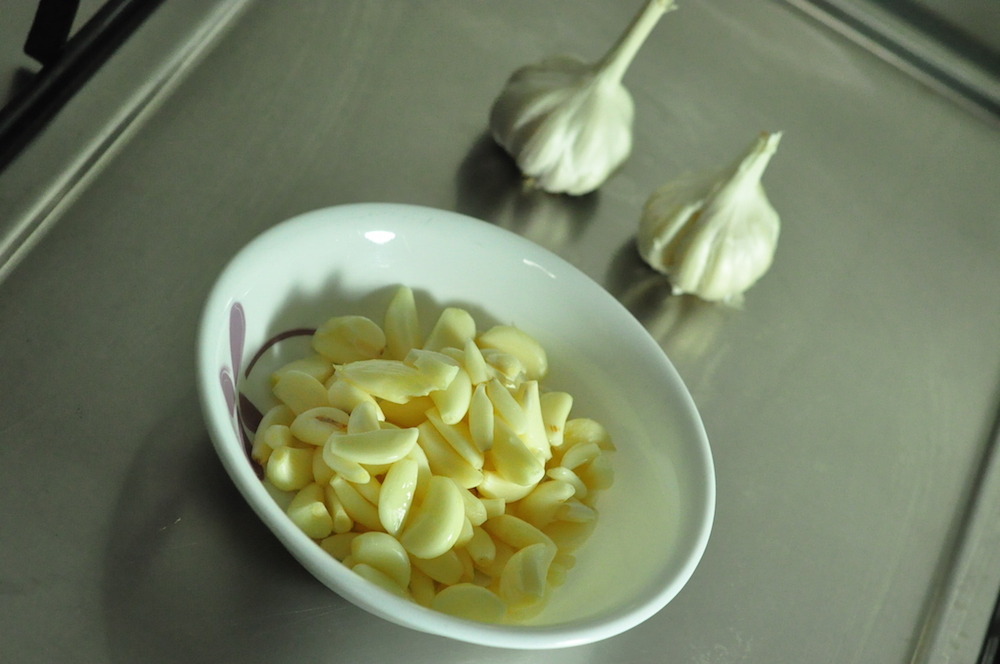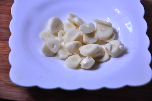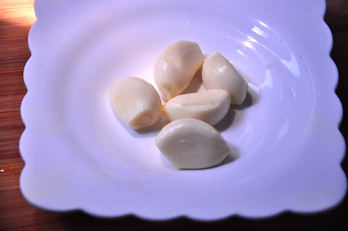 Garliclarge cloves of garlic, peeledLarge cloves of Garlic, slicedIndian Garlic, The cloves are much smaller, more difficult to peel and provide better flavor