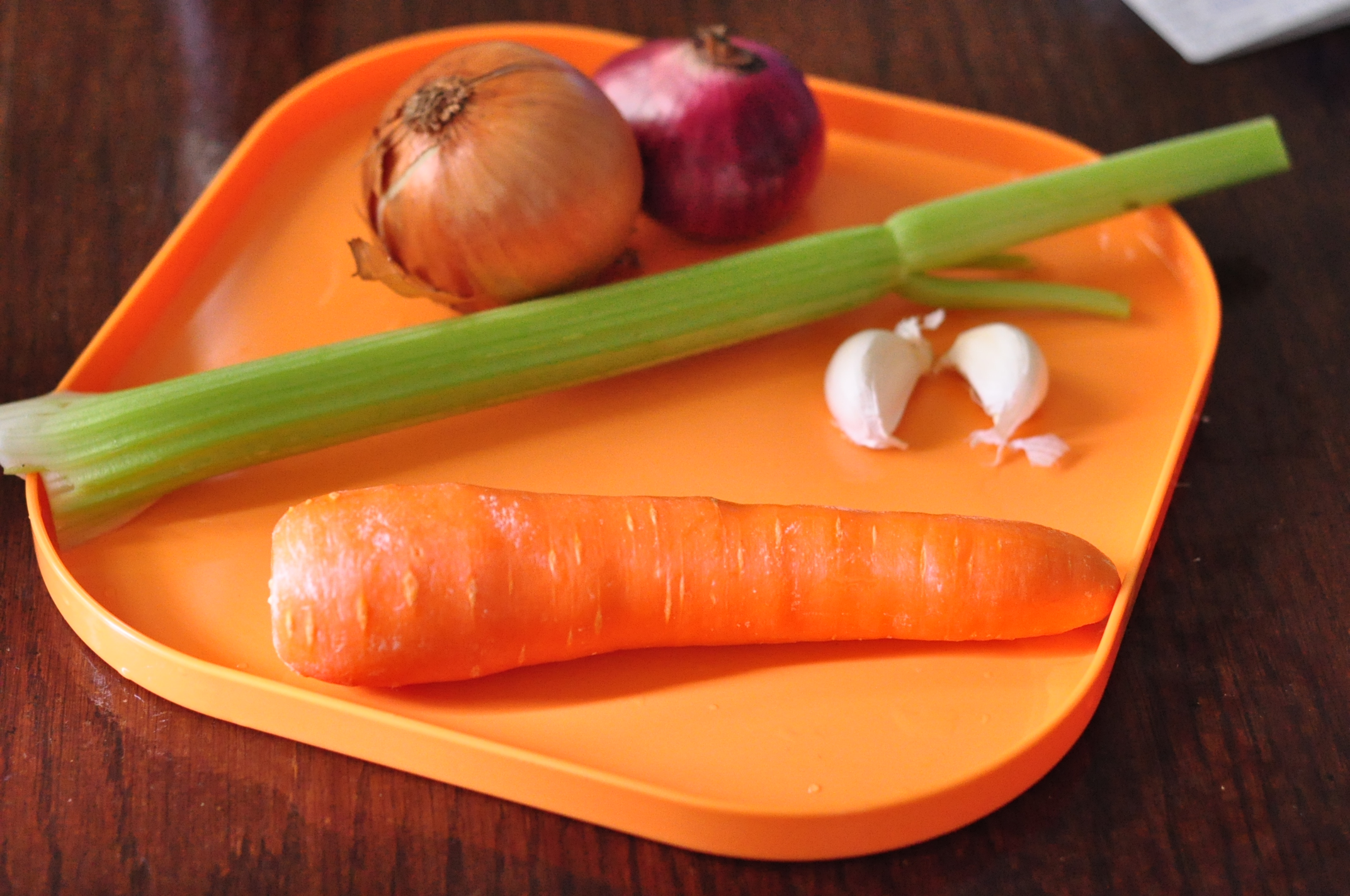 Mirepoix – the classic French combination of onions, carrots, and celery, typically in a ratio of 2 parts onion to 1 parts each carrot and celery.Asparagus – fine spears