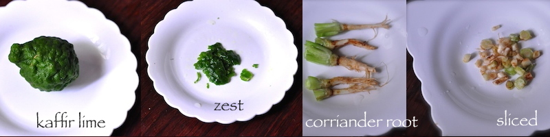 Fresh Turmeric RootFresh Turmeric Root, peeledCoriander /CilantroCoriander RootChopped Coriander RootPandan LeafLemon grass is very common in thai cooking.Lemongrass Slices (READ MORE)Turmeric Leaves (Daun Kunyit) used in South East Asian COOKING.Kaffir LimeKaffir Lime Leaf