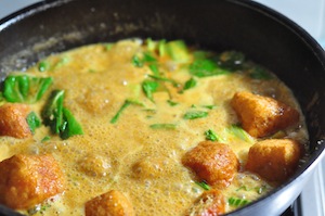 - One packet fried tofu puffs cut into half OR fry your own Firm Tofu into medium cubes (preferred)