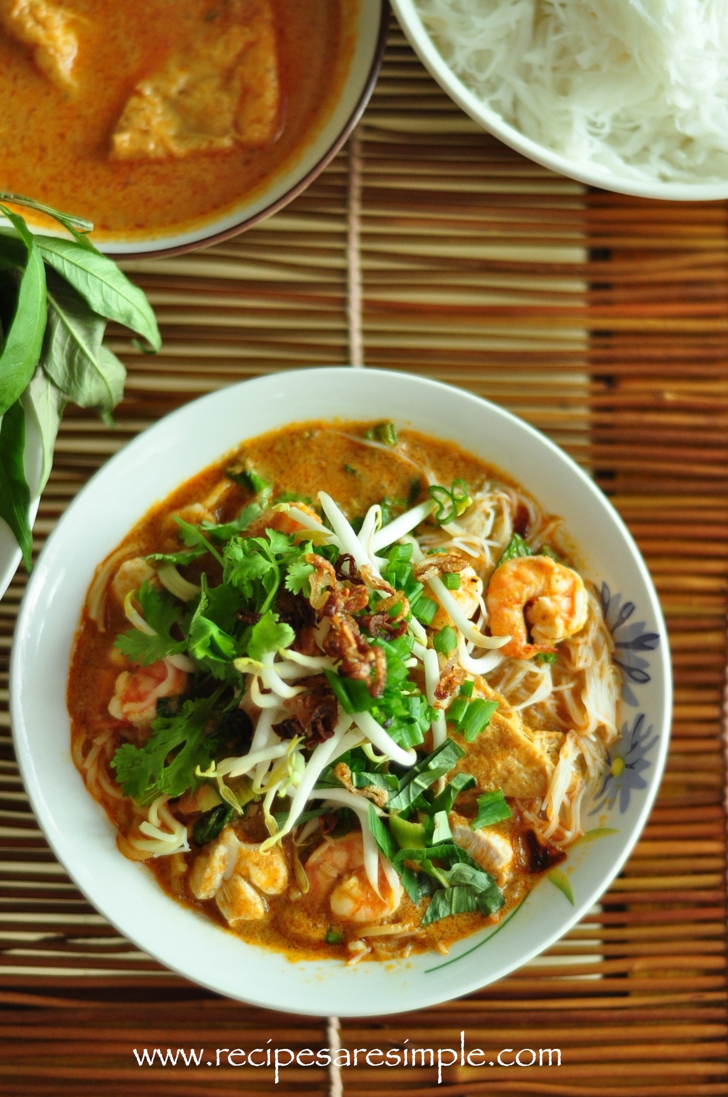[…] LAKSA – is a Malaysian dish consisting of a combination of noodles in a curried soup. It can contain prawns and chicken and is garnished with fresh herbs , bean sprouts, crisp shallots. It can be topped with boiled egg slices and lime wedges.SEE DETAILED RECIPE HERE:https://www.recipesaresimple.com/malaysian-laksa-curried-noodle-soup-prawns-fresh-herbs/ […]