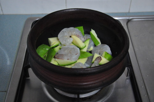 You are here: Quick Browse > Fish and Seafood > Prawns Curry with Green Mango - Konju Mango Curry