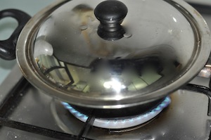 Use an ‘Apa Chatti’ OR Rounded non-stick pan/ ‘kadai’ with a lid.