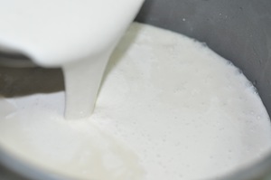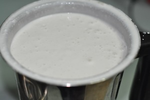 To a heavy-duty mixer/blender add and grind the raw rice first with 1 ½ cups of the ‘soaking’ water.