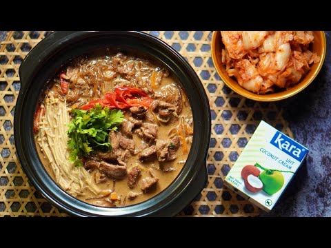 takes your taste buds on a delightful adventure. Imagine the melt-in-your-mouth tenderness of bulgogi-marinated beef mingling with a rich, savory broth infused with the luscious sweetness of coconut cream. It’s a delicious combo of familiar Korean flavors with an intriguing tropical twist.