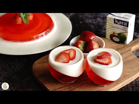Coconut panna cotta with strawberry jelly is a modern and tropical twist on the classic Italian dessert. It's a two-layered, chilled dessert that combines a creamy, rich panna cotta base with a vibrant, fruity top layer.
