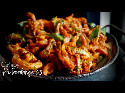 Padavalanga 65 is a South Indian snack or appetizer made with snake gourd (padavalanga). It's a deep-fried dish that's crispy and crunchy on the outside and tender on the inside, with a spicy and flavorful coating.