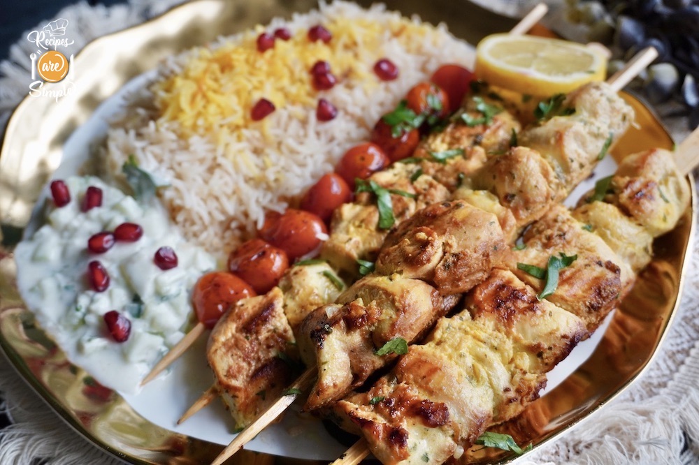 Joojeh Kebabs are a beloved dish from Iran. Juicy, marinated Chicken skewers, with a unique, light, and fragrant marination, are usually grilled on a charcoal grill. They can also be made on the stove top.