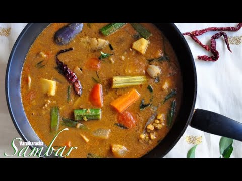 "Varutharacha" literally means "roasted and ground." This refers to the freshly made spice paste which is prepared by roasting and grinding a blend of whole spices and fresh grated coconut. It's the traditional method of making this delicious Sambar.