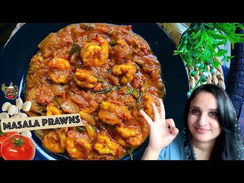 A quick, salivating, spiced-up South Indian style Prawn Masala, with just the right amount of gravy to serve with rice or Rotis.