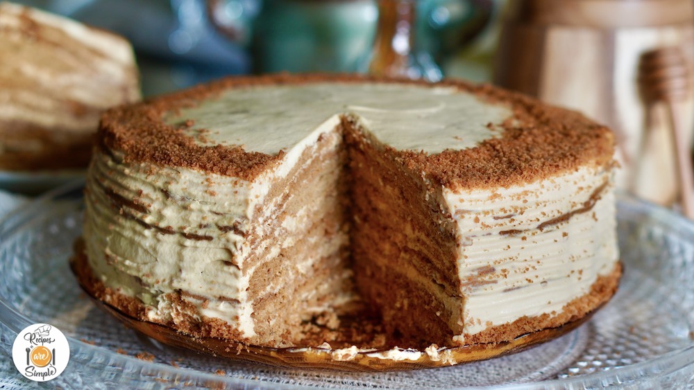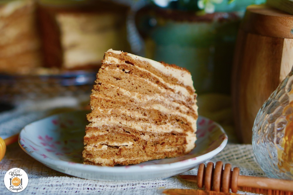 Russian Honey Cake, or the Medovik (pronounced meh-doh-VEEK) originated in the former Soviet Union and is cherished for its delicate, melt-in-your-mouth texture and rich honey-caramel flavor.