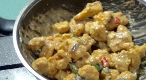 Key Ingredients: Chicken, Salted Egg Yolks, Egg, Tapioca Flour, Sweet Potato Flour, Garlic, Curry Leaves, Oil, Butter, Salt, Pepper, Chilli Flakes.
