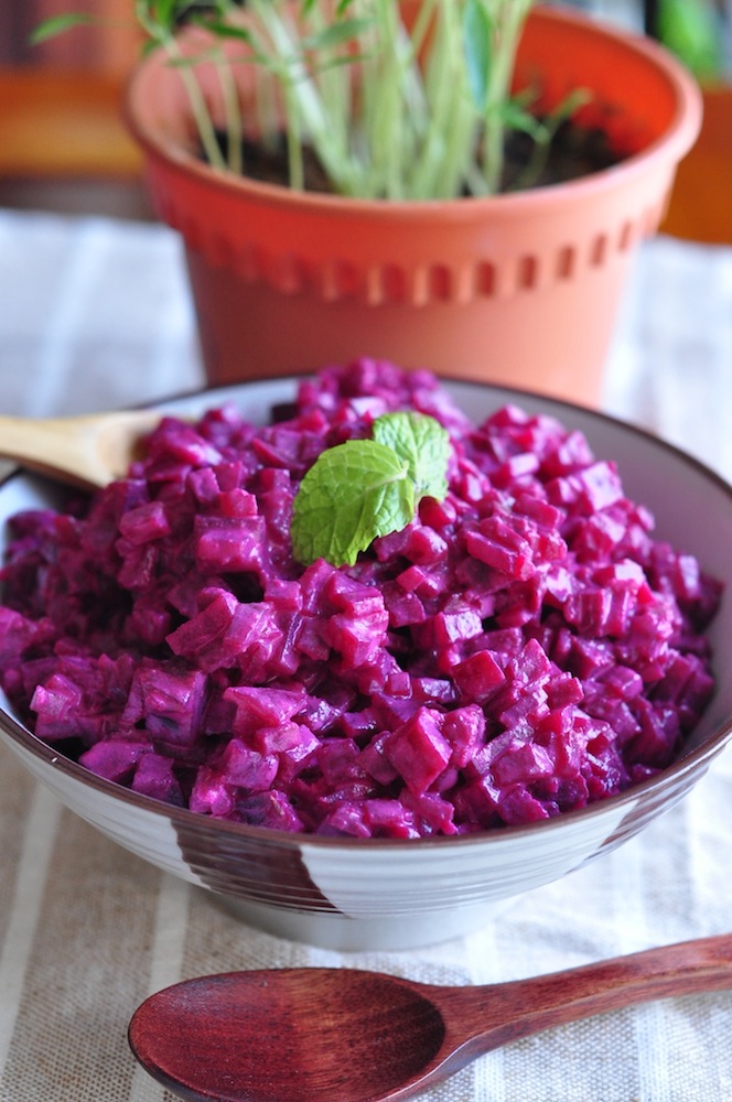 - (I like to do this the day before) You can also dice and then boil the beets but I prefer this method.