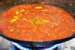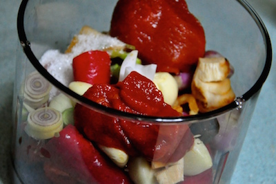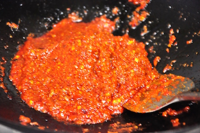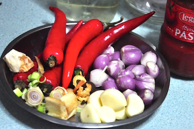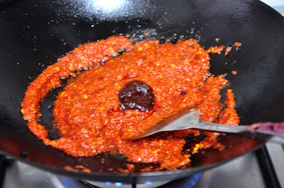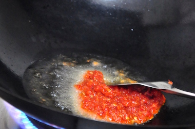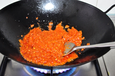 Key Ingredients: Crab, Chilli, Shallot, Garlic  Ginger, Galangal Lemongrass, Tomato Paste, Tomato Puree/Sauce, Black Bean Sauce, Shrimp Paste, Dried Shrimp, Sugar, Salt, Oil, Spring Onion, Coriander.