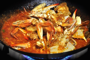 Singapore Chilli Crab. No surprise why this is featured as the national dish of Singapore.The hugely popular dish is not very difficult to prepare at home and the sauce blend can be adjusted to suit your tastes and desired spice level. Despite the name, this is not an overly spicy dish. The long fresh red chillies that go into the spice paste are only mildly hot.