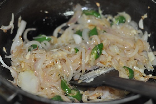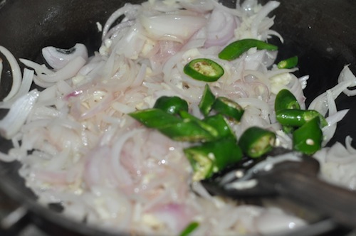 - Stir and add the green chillies.
