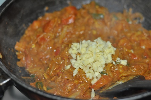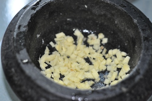 - Now add the crushed, diced ginger.
