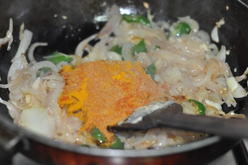 - Add the coriander powder, chili powder and turmeric now.