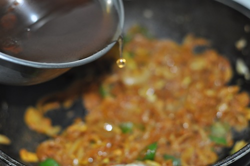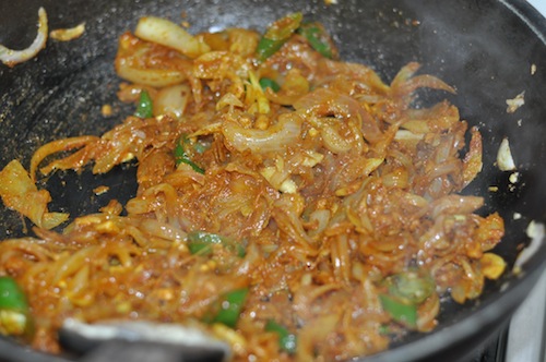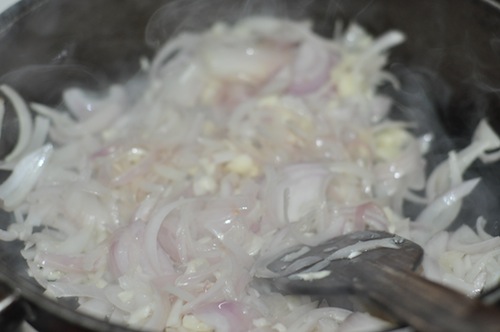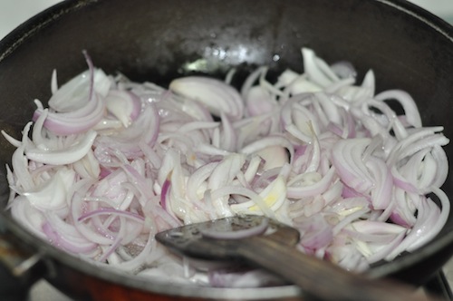 - Stir and Saute till the onion mixture is softened and light golden.