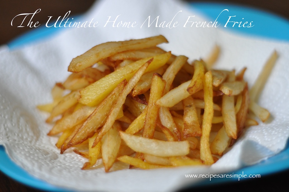 After my post for the delicious cheese sauce for cheese fries I got so many messages asking how to make Home Made Fries. So this is for you. The secret to the best, french fries is that they are deep fried – not Once, but TWICE!